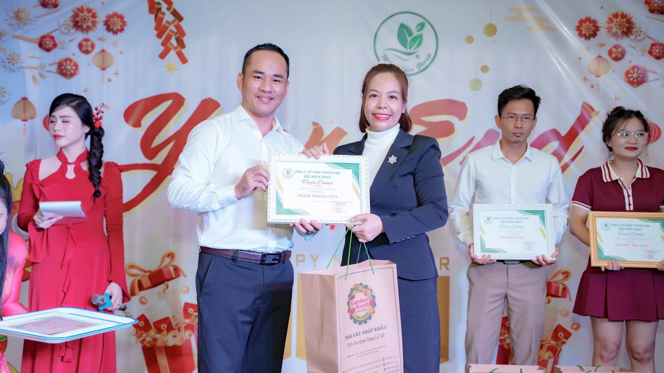 Để Mộc Nhiên có được ngày hôm nay, ngoài tâm huyết của ban lãnh đạo, không thể phủ nhận sự nỗ lực cống hiến hết mình của toàn thể thành viên của công ty, trong số đó có những cá nhân nổi bật rất đáng được tuyên dương trong buổi lễ trọng thể này. Những cá nhân có thành tích xuất sắc, thái độ làm việc hăng say, tận tâm, tận tụy, tư tưởng lạc quan, tích cực và đạt các tiêu chuẩn đánh giá của công ty trong năm qua tiến bước lên sân khấu và nhận những phần thưởng từ ban lãnh đạo công ty.